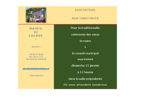 Le Maire et le Conseil municipal vous donne rendez-vous pour la traditionnelle cérémonie, au cours de laquelle, ils échangeront les voeux de nouvelle année.